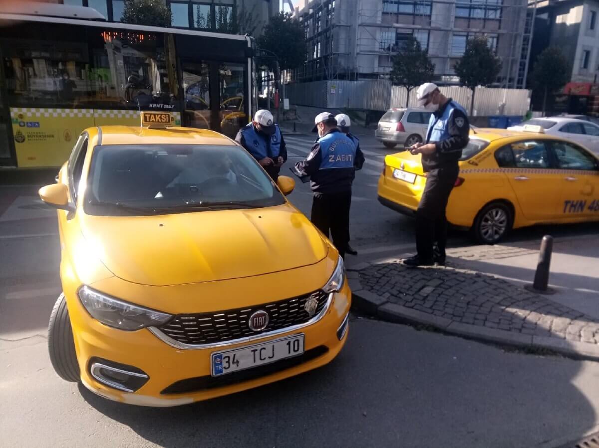 O anlar görüntülere yansıdı. Görüntülerin sosyal medyada yayınlanmasının ardından İstanbul Büyükşehir Belediyesi Trafik Zabıta ekipleri olayın yaşandığı yerde taksilere yönelik denetim yaptı. (DHA)