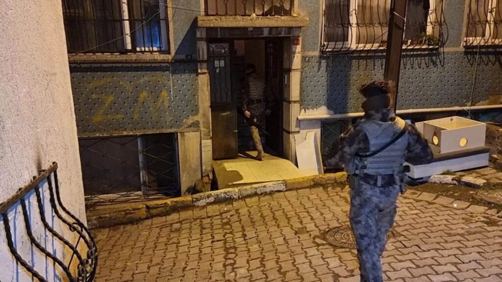 Ekiplerin belirlediği adreslerden biri de Beyoğlu, Hacıahmet Mahallesi Yeni Asır Sokak’ta bulunan 3 katlı bina oldu. Özel harekat polislerinin girdiği dairede ekipler arama yaptı.
