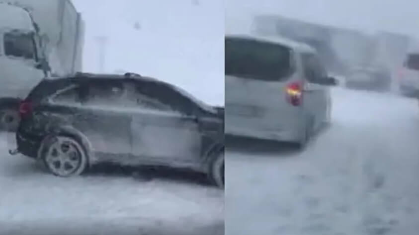 Her iki yönde de kilometrelerce araç kuyruğu oluştu. Bölgede yoğun kar yağışı ve tipi devam ederken, araçların kaldırılma çalışması sürüyor.