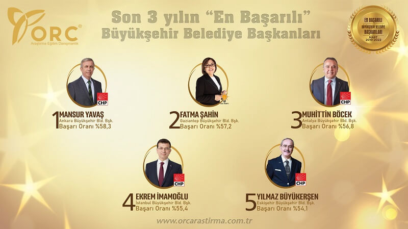 Vatandaşların cevaplarına göre son 3 yılda en başarılı Büyükşehir Başkanı, Ankara Büyükşehir Belediye Başkanı Mansur Yavaş oldu.