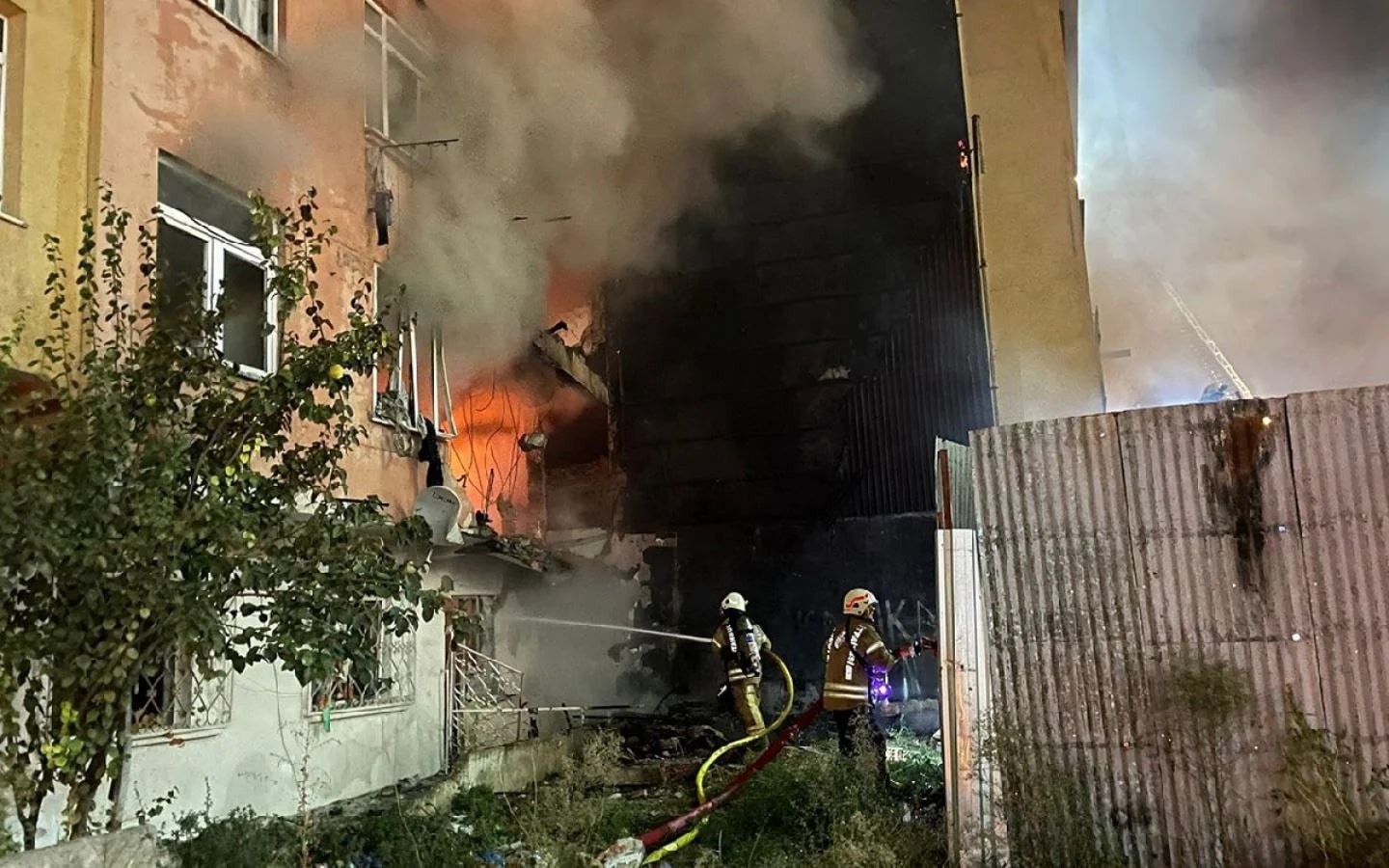 Patlamanın ardından binada yangın çıktı, alevlerin çevredeki 3 binaya da sıçradığı aktarıldı.