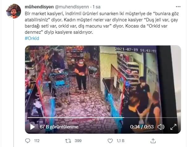 İddialara göre, alışveriş sonrası kasaya gelen çifte, indirimli ürünleri sayan kasiyer “Duş jeli var, çay bardağı seti var, Orkid var, diş macunu var” dedi. Sonrasında ise şahıs “Orkid var denmez” dedi. Bunun üzerine kasiyer şahsa “İlk öncelikle bayan değil kadın” yanıtı verdi. Kasiyerin cevabı sonrasında şahıs, “Ha bayan ha kadın ikisi de aynı diyerek sen benim karıma Orkid felan söyleyemezsin” diyerek kasiyere saldırdı.