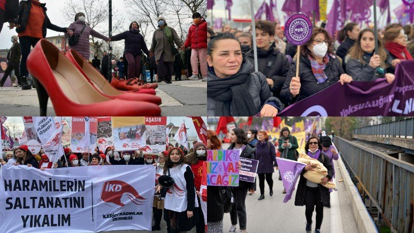 Türkiye’nin dört bir yanında kadınlar cinsiyet eşitsizliği, şiddet, sömürü ve kadınlara yönelik adaletsizliklere karşı sokaklara döküldü.