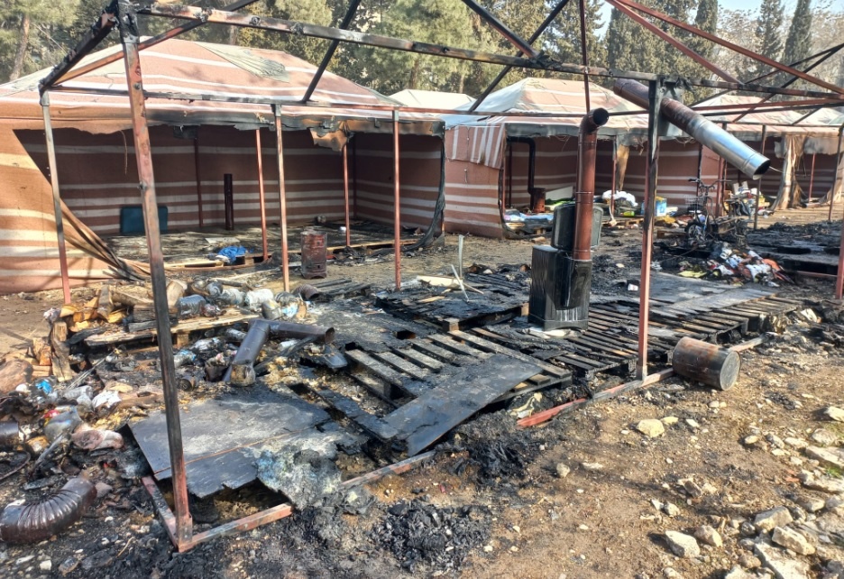Yangında 7 çadır kullanılamaz hale gelirken buralarda kalanlar başka çadırlara yerleştirildi. Polis, inceleme başlattı.