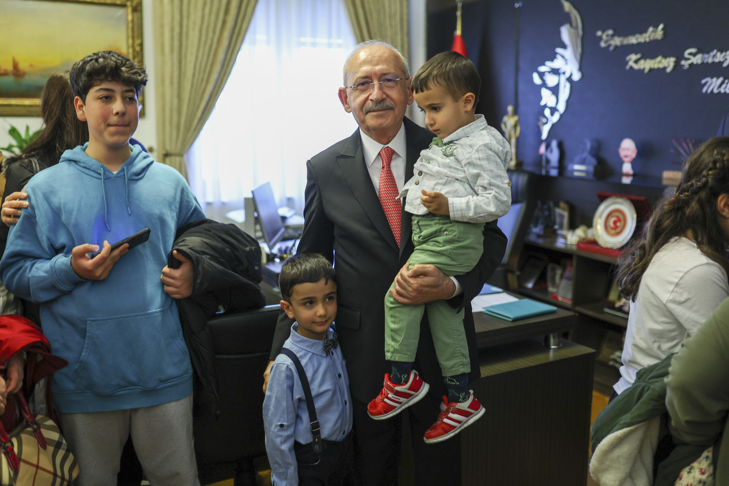 Cumhuriyet Halk Partisi Genel Başkanı ve Millet İttifakı Cumhurbaşkanı Adayı Kemal Kılıçdaroğlu, 23 Nisan Ulusal Egemenlik ve Çocuk Bayramı'nın 103’ncü yılında TBMM’deki makamında çocuklarla bir araya geldi.