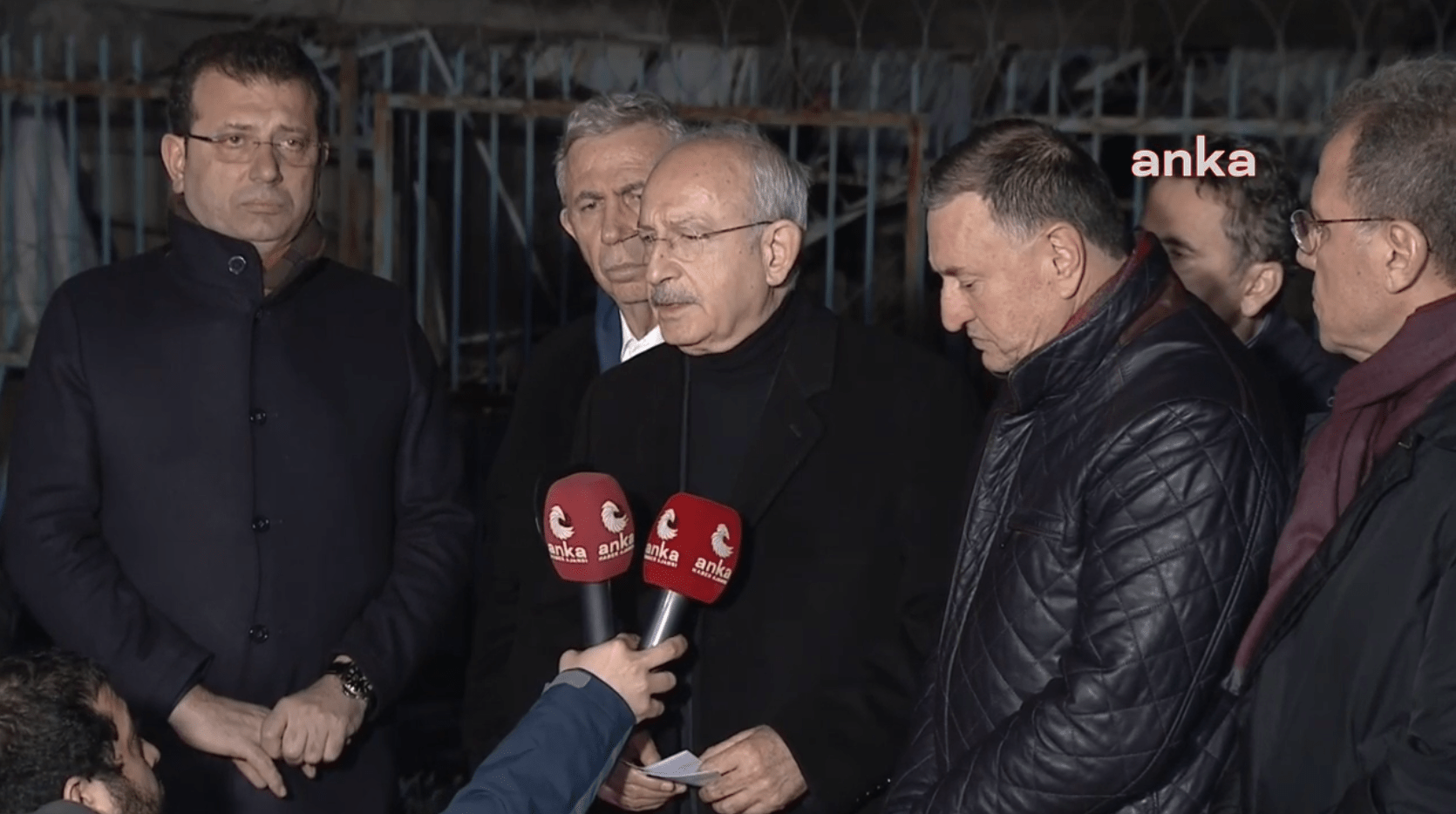 CHP Genel Başkanı Kemal Kılıçdaroğlu Kahramanmaraş merkezli 7.7 ve 7.6 büyüklüğündeki depremlerin en ağır sonuçlarını yaşayan Hatay’da açıklama yaptı. “Haberlerden çok daha ağır tabloyla karşı karşıyayız” diyen CHP lideri, “Devletin kurumları, bürokratlar çalışmak istiyorlar ama önlerine engeller konuyor.” ifadelerini kullandı.