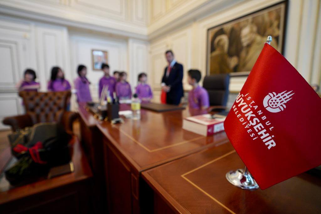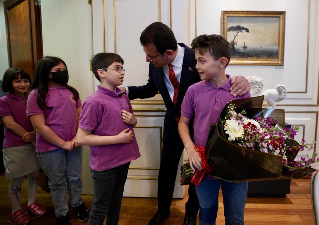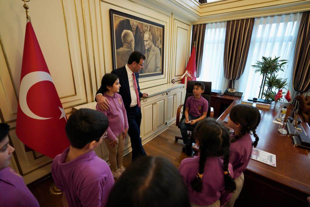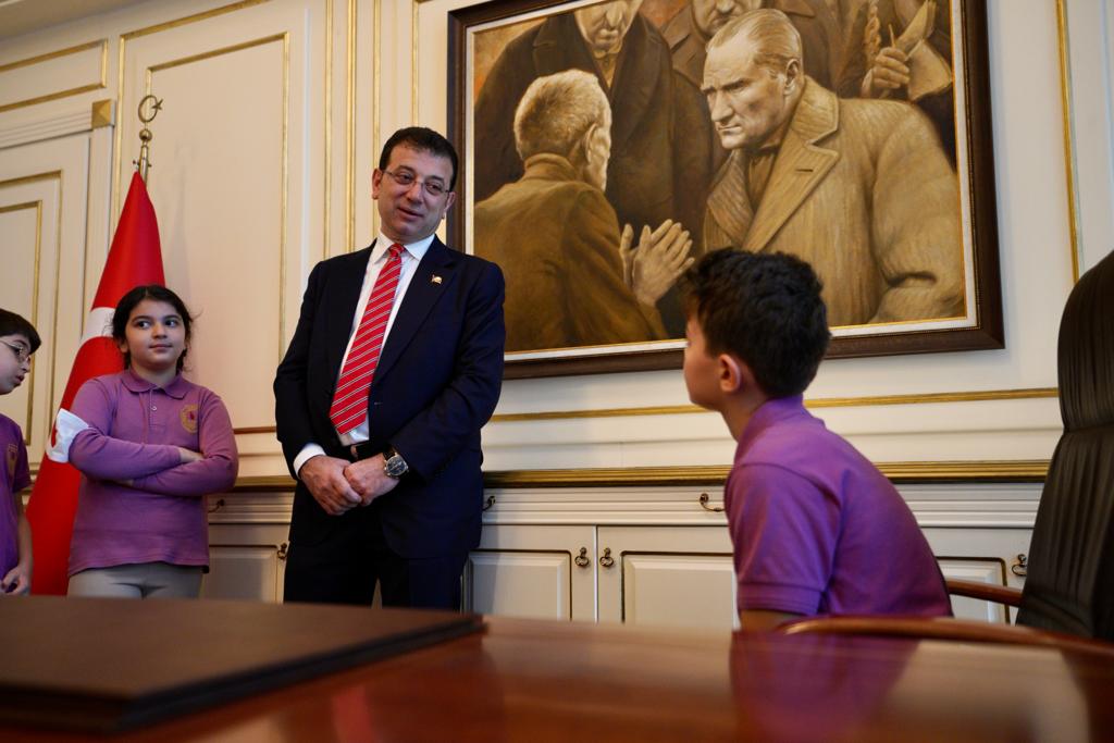 Devir-teslim töreninde hazır bulunan öğrenciler Yağmur Ekmekçi, Yasin Kantemur, Melike Karavelioğlu, Nehir Hüma Doğan, Ada Yavuzcan, Tuğba Yörükoğlu ve Oğuz Kağan Göçmen de İmamoğlu’na İstanbul’la ilgili taleplerini iletti. İmamoğlu, minik öğrencilerden gelen ‘bisiklet yolu’, ‘yeşil alan üretimi’, ‘mahalle çocuk tiyatrosu’ ve ‘çevre ve temizlik bilinci oluşturulması’ gibi talepleri not aldı. İmamoğlu, bir öğrencinin, “Yere çöp atanlara, attıkları çöpü yerden alma cezası verilsin” talebine, “Çok sempatik bir ceza. Hem de ders olur” yanıtını verdi. En iyi “başkan”ın halkını dinleyen başkan olduğunu vurgulayan İmamoğlu, “Onlardan fikir alan, onlarla konuşan, onları dinleyen başkan, en iyi başkan. O zaman halk da mutlu oluyor. Niye? ‘Biz söyledik, Başkanımız yaptı’ diyor” dedi.