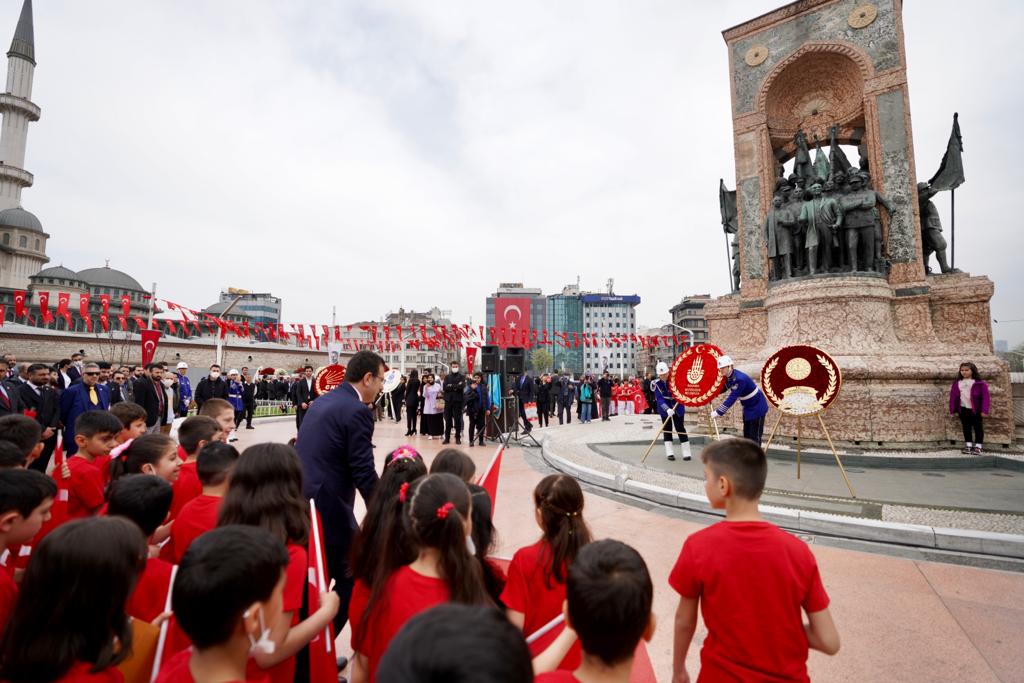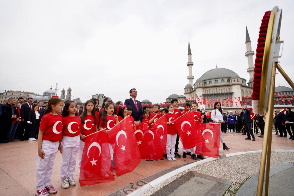 İmamoğlu, 102’nci 23 Nisan kutlamaları kapsamında Taksim Cumhuriyet Anıtı’nda düzenlenen resmi törene de katıldı. Törenin resmi bölümü, İl Milli Eğitim Müdürlüğü Levent Yazıcı tarafından anıta çelenk konulması, saygı duruşunda bulunulması ve İstiklal Marşı’nın okunmasıyla son buldu. İmamoğlu, resmi törenin bitiminden sonra, zabıta mangası eşliğinde getirilen İBB çelengini Cumhuriyet Anıtı’na bıraktı. CHP ve İYİ Parti İstanbul İl Başkanlıkları çelenkleri de anıttaki yerini aldı. Törende, Şehit Kağan Aybek Ortaokulu öğrencisi Meyra Mendi de İsmail Hakkı Sunat’ın “Bizim Bayramımız” adlı şiirini okudu.