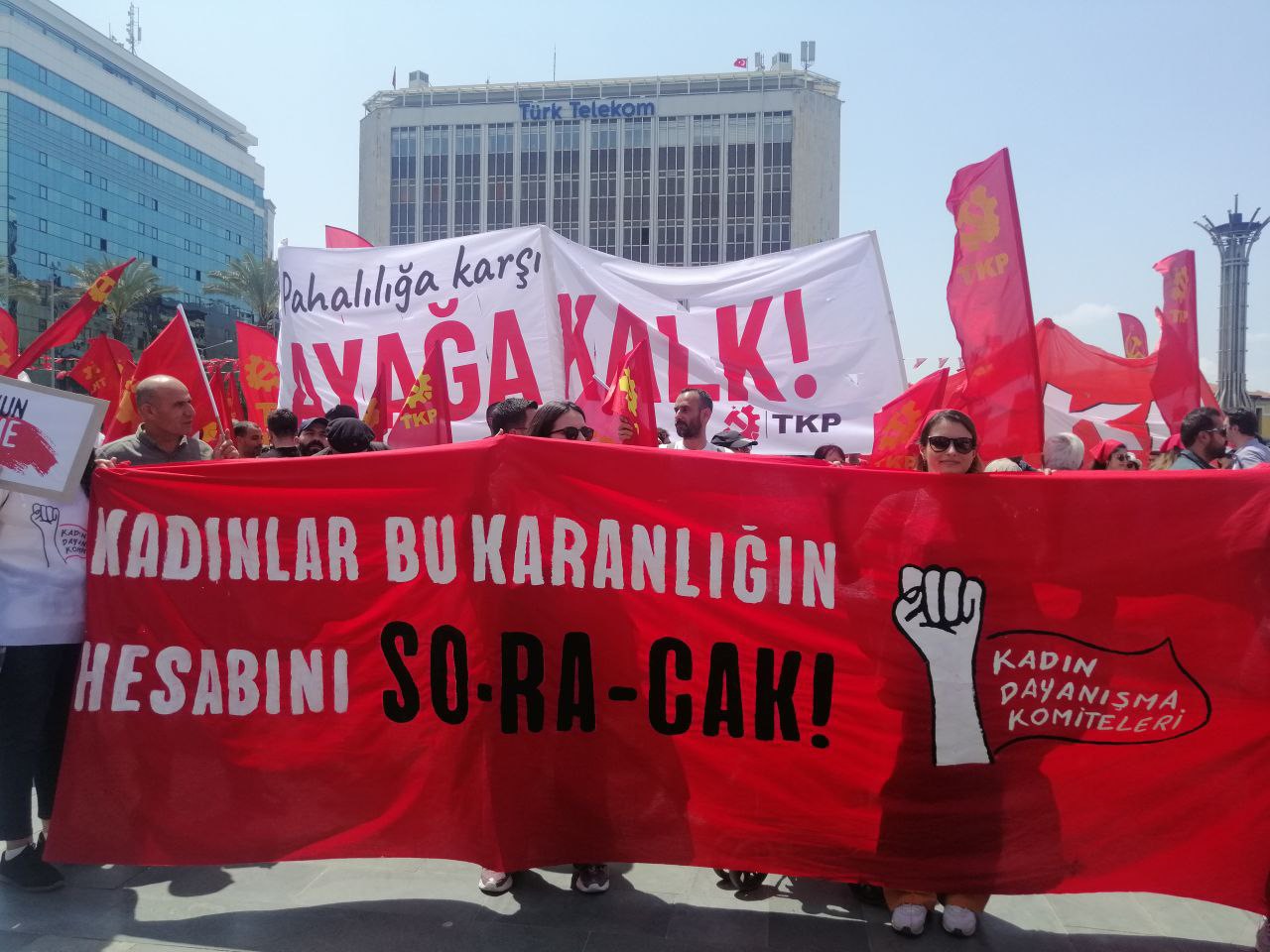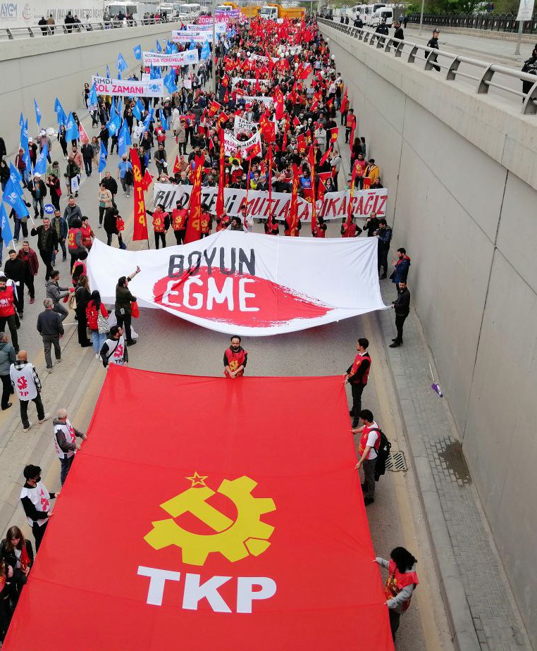 “Ekmeğimizi kazanmak, hakkımız olanı almak, insanca yaşamak, yarınlara umutla bakabilmek, doğayla barışık, kardeşçe yan yana durabilmek için bu düzenden kurtulmalıyız.” diyen TKP’liler, İstanbul, Ankara ve İzmir dışında, Antalya, Adana, Eskişehir, Kocaeli, Konya, Giresun, Samsun, Erzurum Karaçoban, Diyarbakır gibi illerin de içinde yer aldığı toplam 33 noktada mitinglere katıldı.