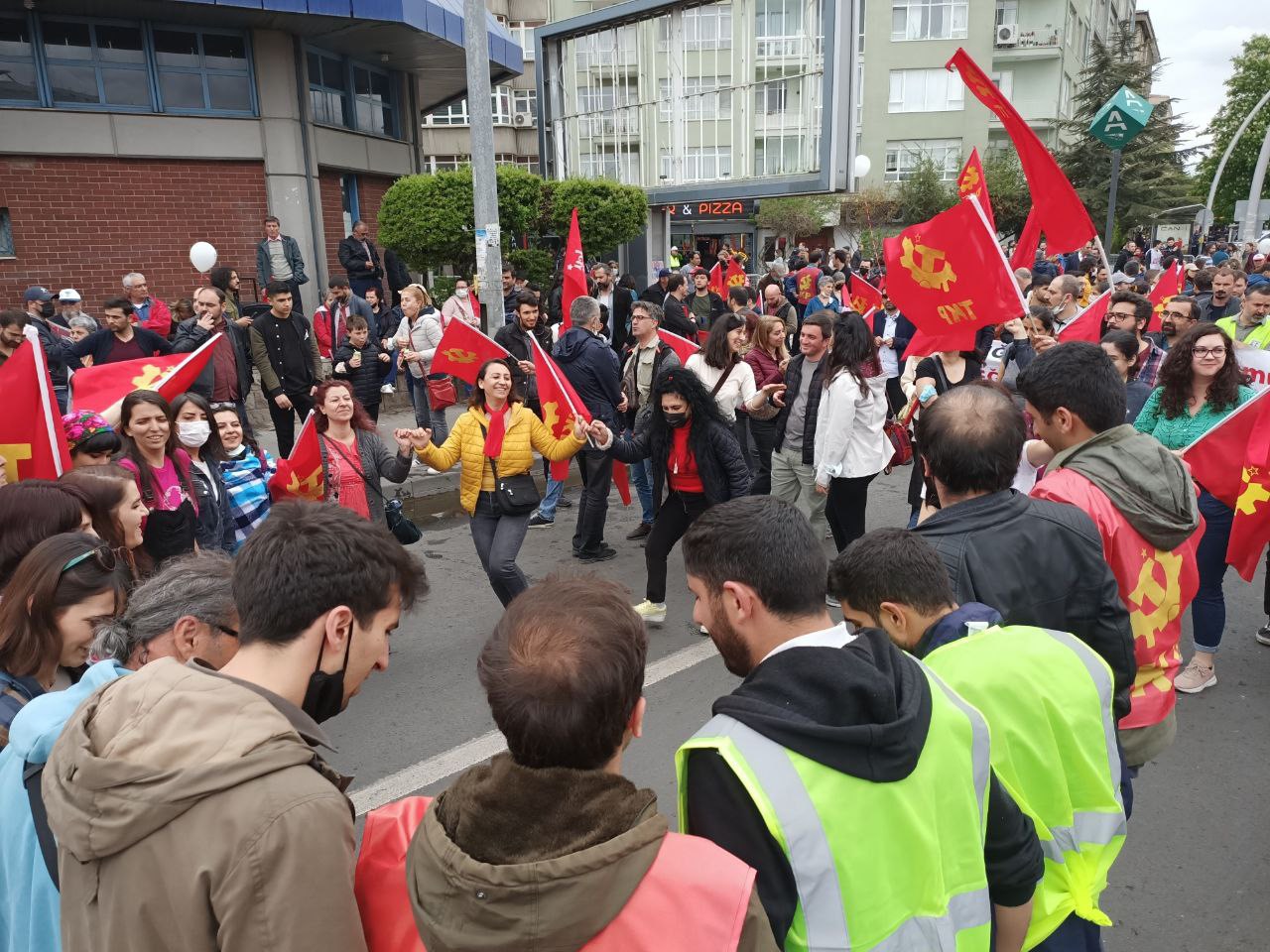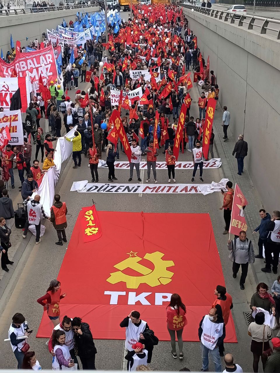 Yürüyüş öncesi pankartlarıyla alanlarda buluşan TKP örgütlerinin yanı sıra, Kadın Dayanışma Komiteleri, Patronların Ensesindeyiz Dayanışma Ağı ve Birlik Sendikası da 1 Mayıs kutlamalarına TKP ile katıldı.