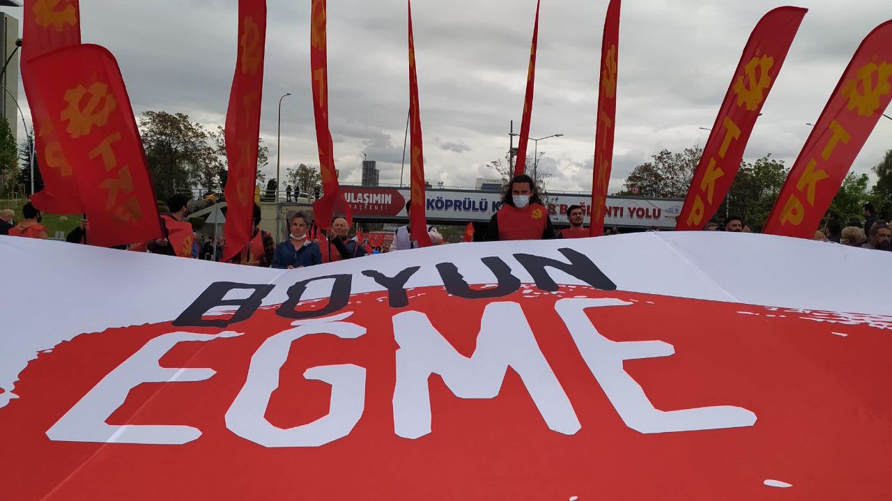 Ankara’da Merkez Komite üyesi ve Ankara İl Başkanı Ozan Yılmaz, iktidarın işçi sınıfının örgütsüz olması için elinden geleni yaptığını belirterek, “Ama işçi sınıfı güçlüdür. Saraylar yıkar saltanatlar devirir. Ne padişahlara boyun eğmiştir ne de sultanlara. Bugün iktidarın en büyük korkusu ise işçi sınıfının gücünün farkına varması ve bir araya gelmesidir” diyen Yılmaz, “İşte bu güç, bugün ülkemizi aydınlığa kavuşturacak ve patronların saltanatına son verecek tek güçtür. Türkiye Komünist Partisi tüm emekçileri; Gelin dayanışmayı büyütelim! Gelin mücadeleyi büyütelim! Gelin hakkımız olanı, insana yaraşır bir ülkeyi hep birlikte kazanalım! ifadelerini kullandı.