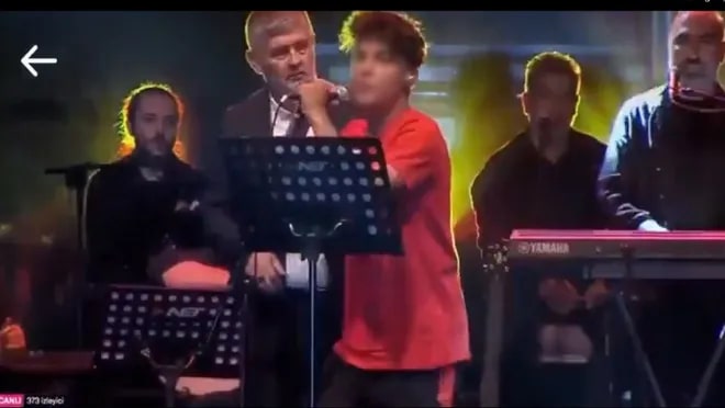 Sanatçı Taner Yüncüoğlu’nun, sözleri Abdurrahim Karakoç’a ait bir besteyi seslendirdiği anda sahneye atlayan M.O., mikrofonu aldı ve izleyicilere “Konya, uyan artık AK Parti’ye oy verme” diye bağırdı.