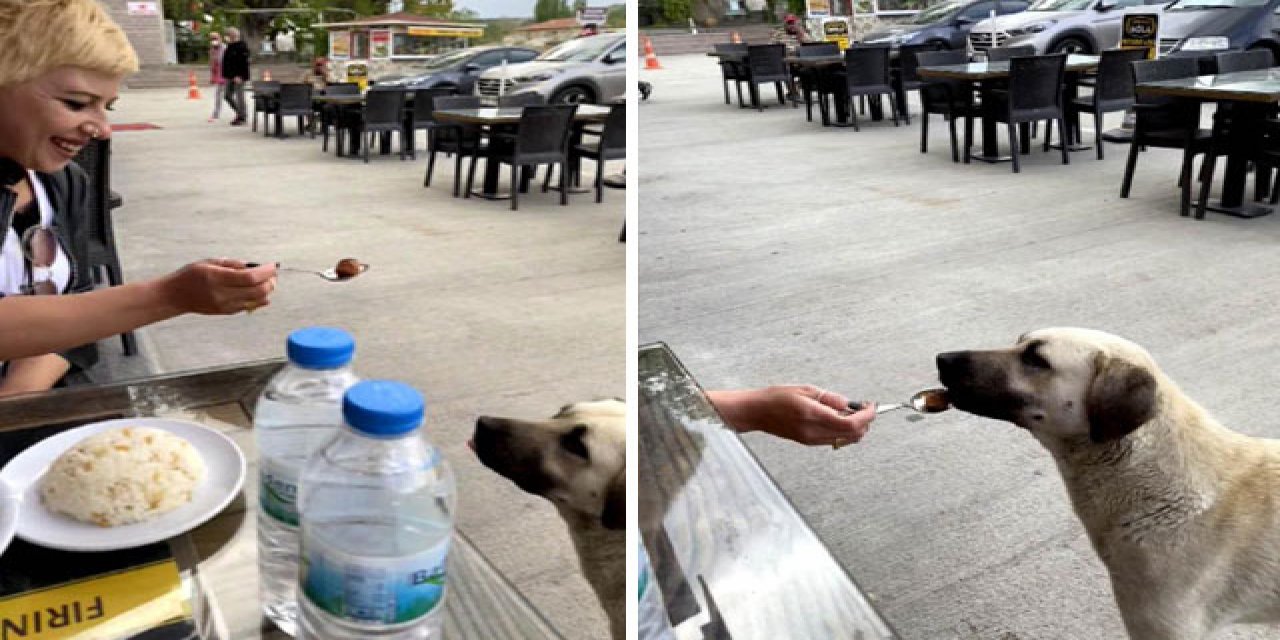 Ankara’dan Kahramanmaraş’a gelen Sema Şenol, dinlenmek ve yemek için bir konaklama tesisinde mola verdi. Şenol, yemek yerken bu sırada yanlarına sokak köpeği geldi. Köpeğin aç olduğunu fark eden Sema Şenol, yemek yediği kaşıkla köpeğe de yedirdi. Köpeği kendi yediği köfte ve pilavla besleyen Şenol, o anları sosyal medyada da paylaştı.