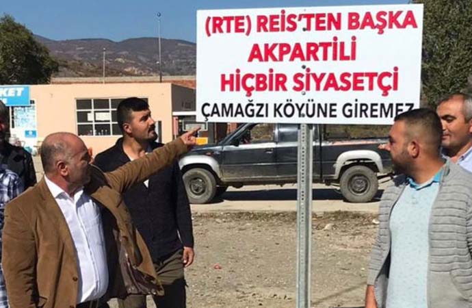 Cumhuriyet’ten Savaş Kalkan’ın haberine göre, Tokat merkeze bağlı Çamağzı Köyü Muhtarı Mustafa Keskin, 3 yıldır İl Özel İdaresi’nden hizmet alamadıklarını belirterek, köyün girişine “(RTE) Reis’ten başka Ak Partili hiçbir siyasetçi Çamağzı köyüne giremez” tabelası astı.