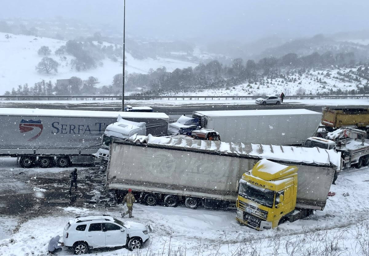 Kuzey Marmara Otoyolu’nda 4 TIR’ın karıştığı zincirleme kaza meydana geldi.