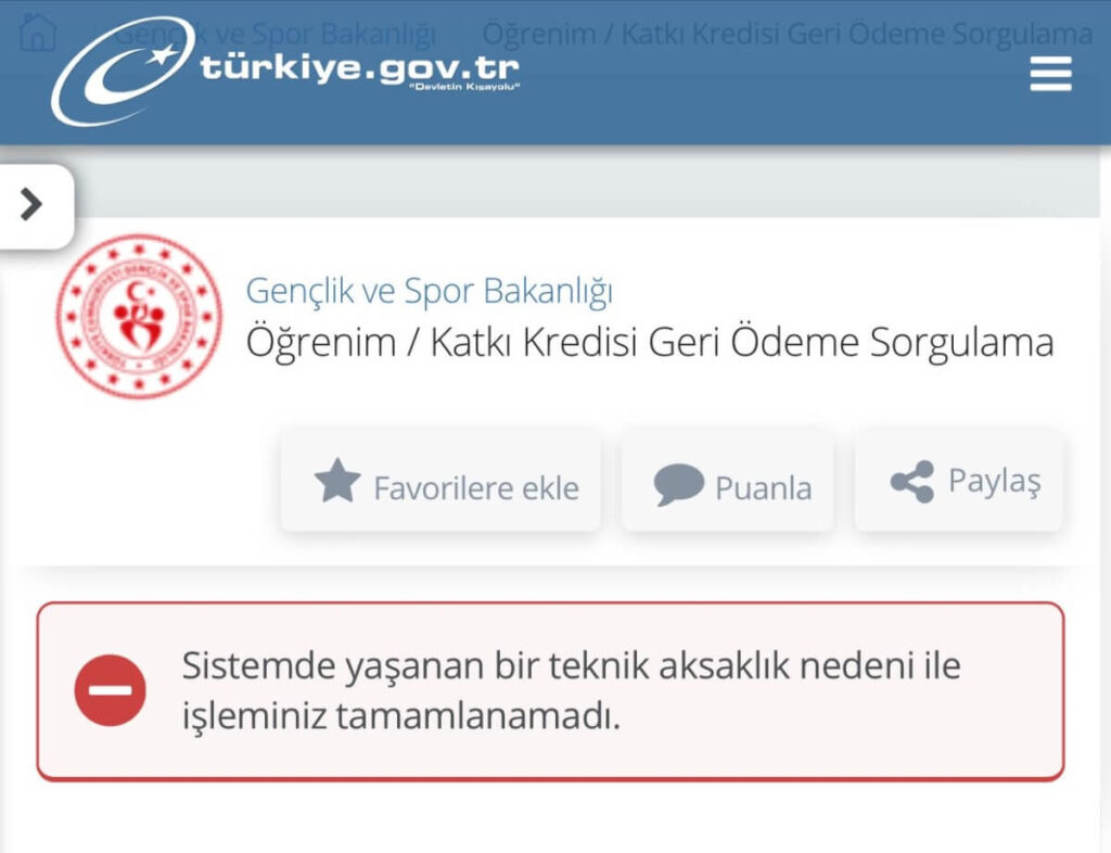 Karar sonrası e-Devlet’te Öğrenim/ Katkı Kredisi Geri Ödeme Sorgulama ekranı üzerinden giriş yapmak isteyen yurttaşlar sisteme giriş yapamadı ve “sistemde yaşanan teknik bir aksaklık nedeni ile işleminiz tamamlanamadı” uyarısı ile karşılaştılar.