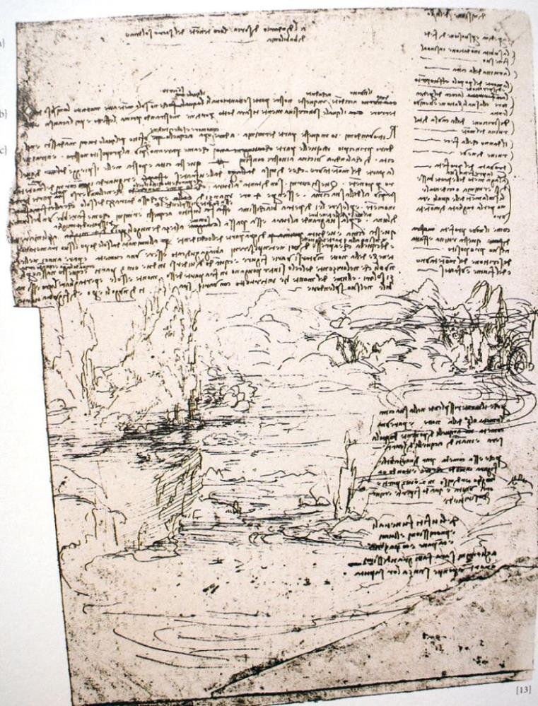 * Arkasından da hem Küçük Asya’nın (yani Anadolu) hem de Toroslar’ın jeolojik özelliklerini anlatmaya başlıyor; Leonardo Da Vinci Toroslar’ı anlatıyor ‘Haziran ayı ortalarında, güneşin geldiği belli bir noktada Toros Dağı’nın gölgesi öyle bir yükseğe ulaşır ki bu gölge 12 günlük mesafedeki Sarmatya (Kafkasya) sınırlarını; Aralık ayının ortasında ise kuzeye doğru bir aylık yol mesafesindeki Hiperborya (Sibirya) Dağlarını bulur.
