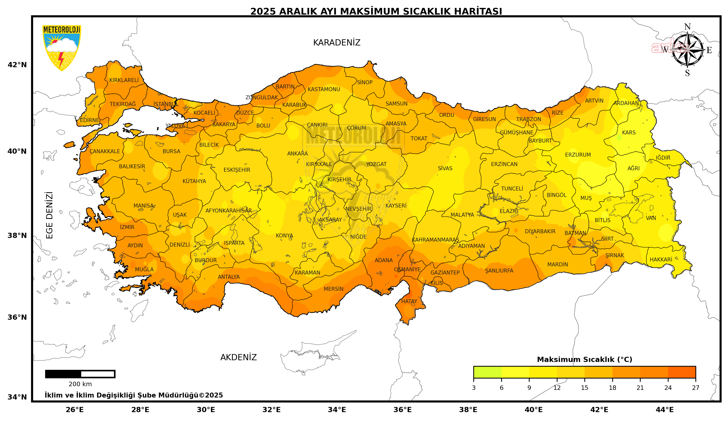 ANKA Haber Ajansı’nın MGM verilerinden derlediği bilgilere göre, 2025 yılı Aralık ayında Türkiye genelinde ortalama sıcaklıklar, Edirne, Kadıköy, Gökçeada çevrelerinde mevsim normallerinin üzerinde gerçekleşti.