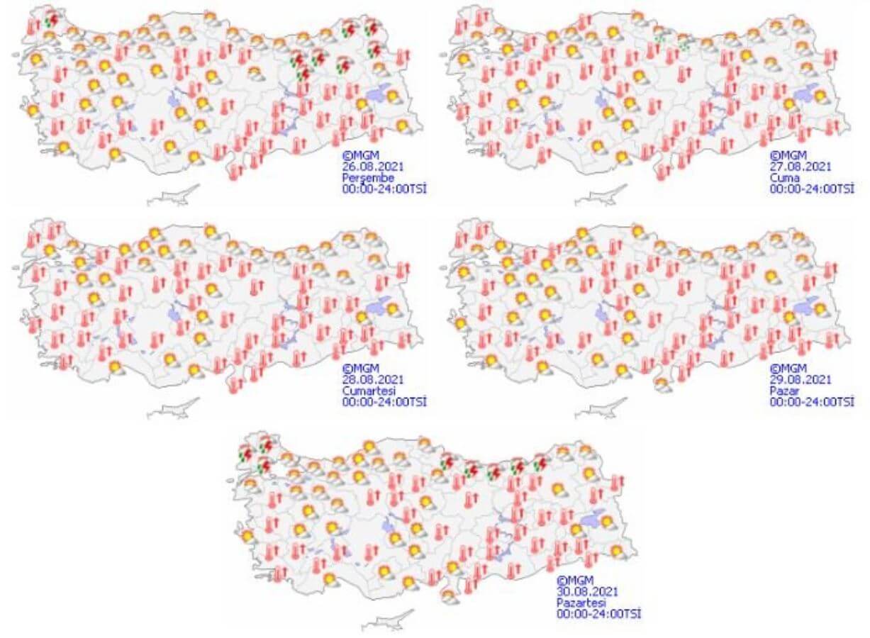 Meteoroloji Genel Müdürlüğü tarafından yapılan son değerlendirmelere göre; Ülkemizin kuzey kesimlerinin parçalı ve yer yer çok bulutlu, Doğu Karadeniz’in iç kesimleri, Doğu Anadolu’nun kuzeyi ve Kırklareli, Kastamonu’nun kıyı kesimleri ile gece saatlerinde Samsun ve Ordu çevrelerinin yerel olmak üzere aralıklı sağanak ve gök gürültülü sağanak yağışlı, diğer yerlerin az bulutlu ve açık geçeceği tahmin ediliyor.