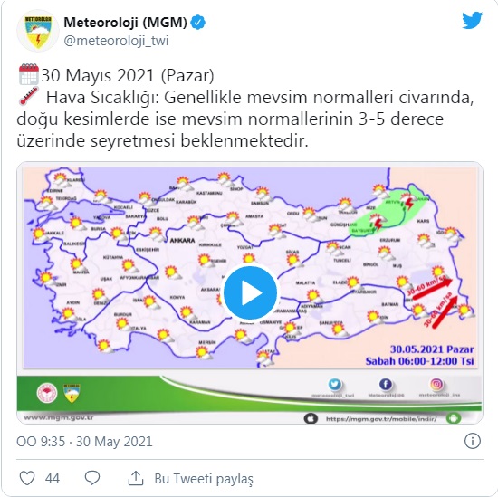 Hava sıcaklıklarının genellikle mevsim normalleri civarında, Doğu Anadolu Bölgesi civarında ise mevsim normallerinin 3-5 derece üzerinde seyretmesi öngörülüyor.