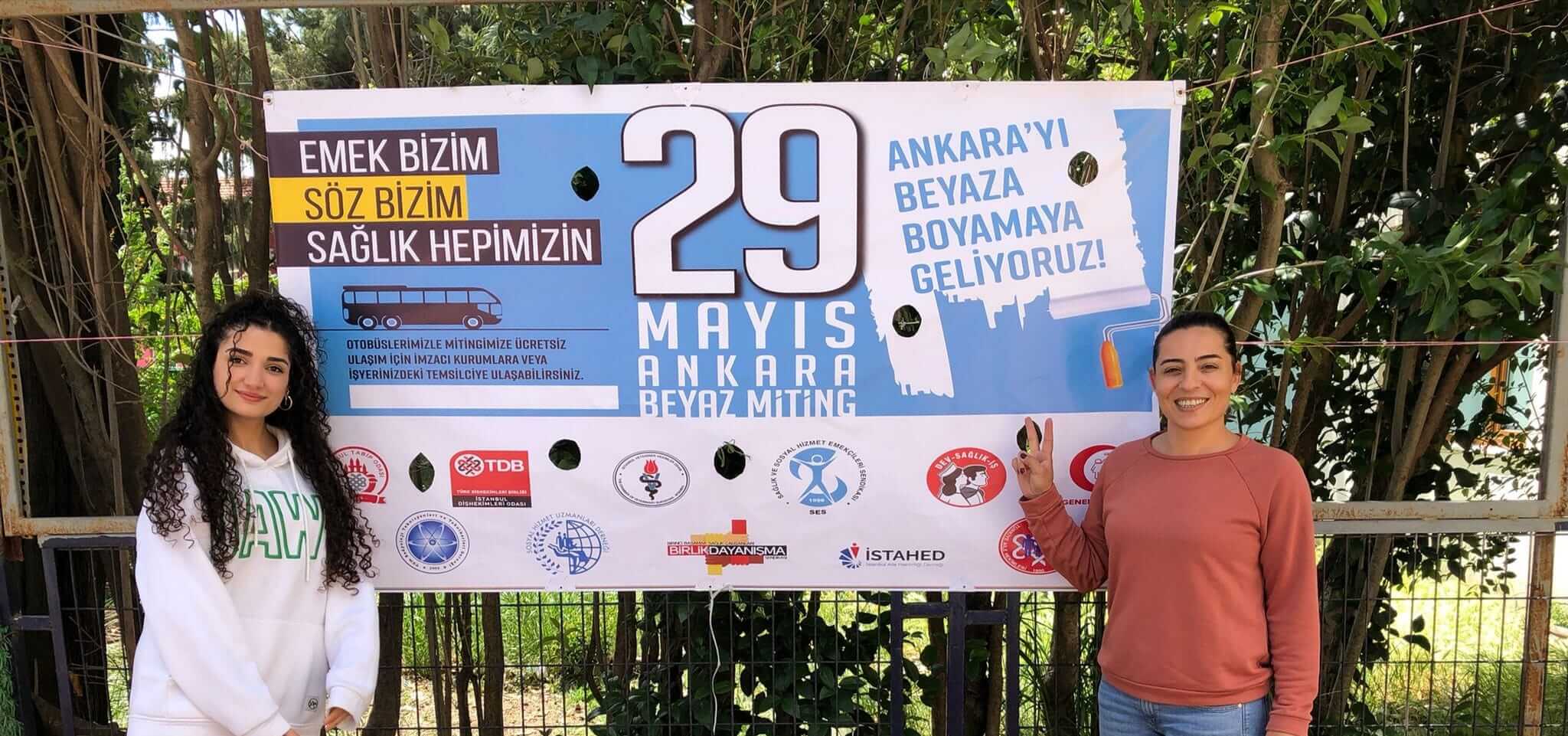 “Emek Bizim Söz Bizim, Sağlık Hepimizin”  ifadeleriyle sağlık sektörüne dikkat çekilen davette, “Sağlık sisteminin toplum yararına değiştirilmesi, hekimlerin yaşama, çalışma ve ekonomik koşullarının düzeltilmesi için herkesi 10 acil talebimize destek vermeye ve 29 Mayıs’ta Ankara’daki Beyaz Miting’e çağırıyoruz” denildi. Miting çerçevesinde saat 14.00’da Kardeş Türküler de bir konser verecek.