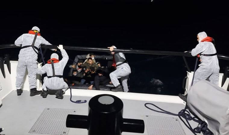 Yunanistan unsurlarınca Türk kara sularına geri itildiği belirlenen can salı içerisindeki 14 düzensiz göçmen, görevlendirilen Sahil Güvenlik botları tarafından kurtarıldı.