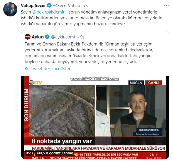 Twitter hesabından Pakdemirli’ye yanıt veren Vahap Seçer, şunları yazdı: