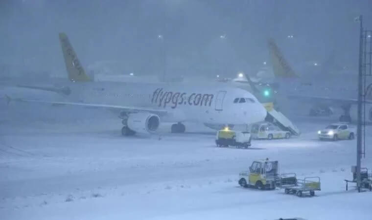 İstanbul’u etkisi kar yağışı nedeniyle hava ulaşımındaki aksamalar sürüyor.