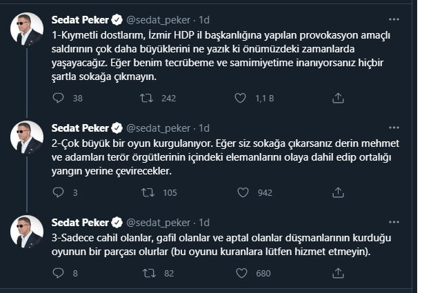 Konuyla ilgili Twitter hesabından açıklama yapan Peker, şunları yazdı: