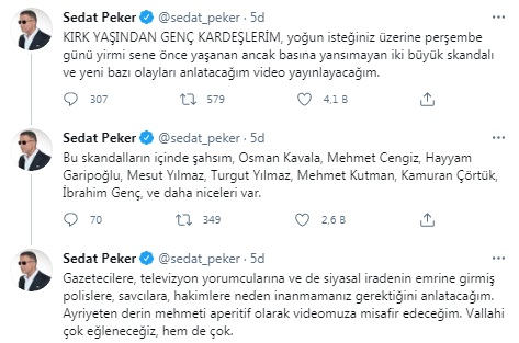 Sedat Peker, Twitter hesabı üzerinden yaptığı paylaşımlarda yeni yayınlayacağı video için şu ifadeleri kullandı: