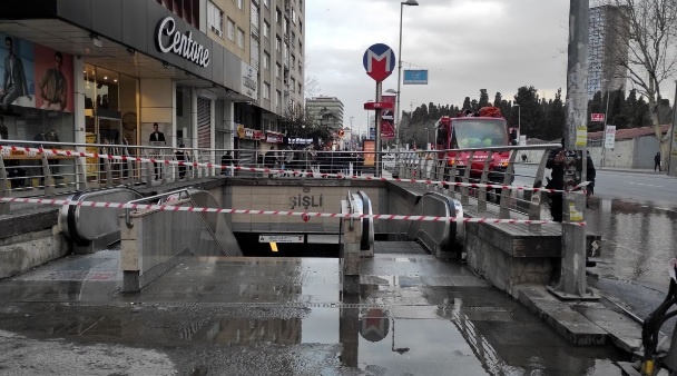 Su nedeniyle metronun Şişli Ortaklar Caddesi çıkışı kapatıldı.