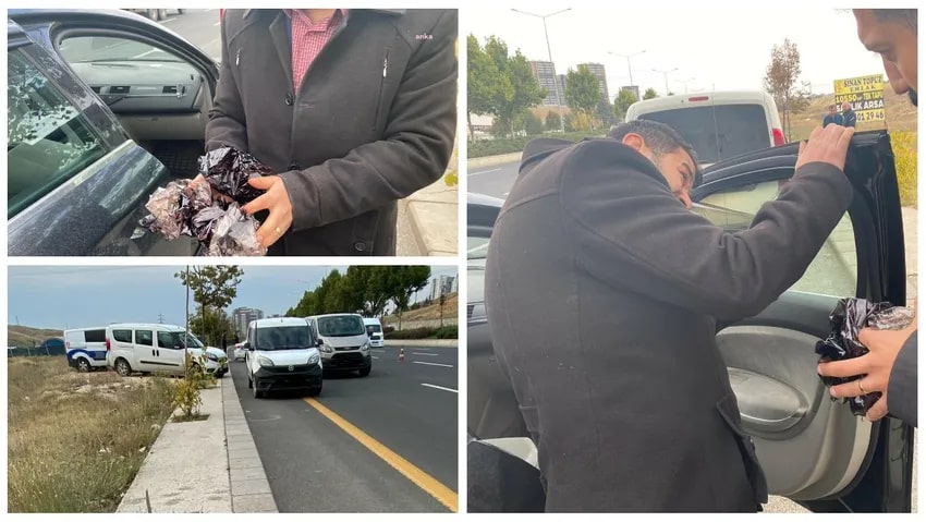 Sonra trafik polisleri, şu an sol tarafında gördüğünüz araçta yan cam filmleri olduğu gerekçesiyle aracın bağlanacağını, anahtarı teslim etmem gerektiğini söylediler. Buna dair hukuki gerekçe sorduğumda Trafik Kanunu’nun 30. maddesinin b bendini gerekçe gösterdiler. İlgili bent, sürüşü engelleme şartı koymakta ve buna ilişkin böyle bir engelleme varsa bile ihtar edileceğini belirtmekte. Bu nedenle ihtar olmadan doğrudan aracı bağlayamayacaklarını söyledim. Sonrasında cam filmlerini sökebileceğimizi de söyledik. Tespit yaptıklarını söylediler ancak buna dair herhangi bir tutanak göstermediler. Tespit nedeniyle de aracı mutlak suretle bağlayacaklarını söylediler. Biz de bunun üzerine cam filmlerini söktük. Cam filmlerini söktüğümüz, gelip tespit yapıp yolumuza devam etmek istediğimiz söyledik. Ama halen amirleriyle görüşeceklerini söylüyorlar. Şu an insani ihtiyaçlarımızı dahi gideremeyeceğimiz bir yerde keyfi bir biçimde bekletiliyoruz.”
