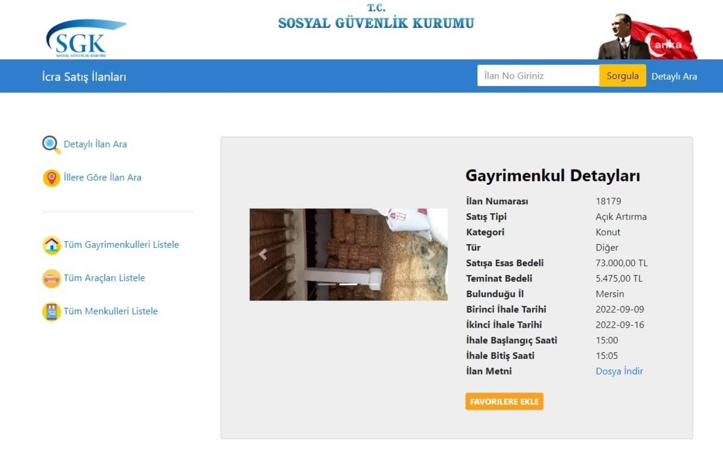 SGK’nin resmi internet sitesinde yer alan duyuruya göre 73 bin TL’ye ihale yöntemiyle satılığa çıkarılan samanlık tartışma konusu oldu. İhaleye 18179 ilan numarasıyla çıkıldı. Buna göre, ilk ihale 09 Eylül 2022 tarihinde olacak. İkinci ihale ise 16 Eylül 2022 tarihinde yapılacak. İlan bilgilerine göre samanlığın teminat bedeli olarak da 5 bin 475 TL fiyat biçildi.