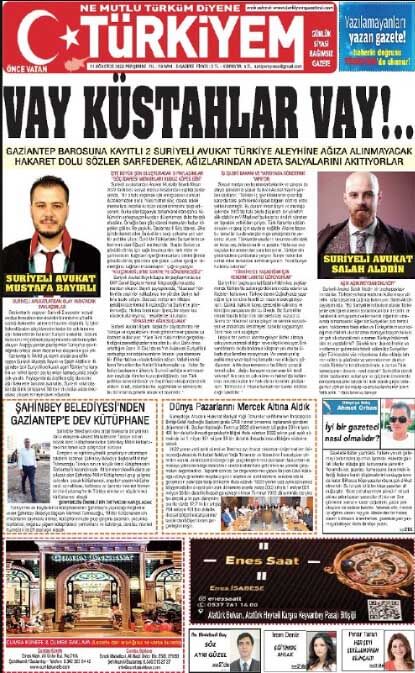 Gaziantep’te yayınlanan Türkiyem Gazetesi’nin haberine göre, Baro’ya kayıtlı olarak avukatlık yapan Suriyeli Mustafa Bayırlı ve Salah Alddin’in Türkiye’ye karşı skandal paylaşımlar yaptı. Paylaşımlarda özellikle Göç İdaresi’ne ağır hakarette bulundukları görülen avukatlar, Suriyelileri de birlik olmaya ve Türkiye’yi uluslararası mecralara şikayet etmeye davet etti.