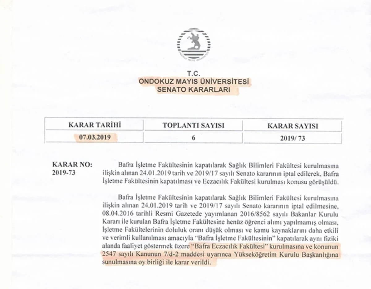 Cumhuriyet’in gündeme getirdiği eğitim skandalının her gün yeni ayrıntıları ortaya çıkıyor. Bugün eczacılık fakültesi olan binada, 2016 yılında Ondokuz Mayıs Üniversitesi’ne bağlı işletme fakültesi açılmasına karar verildi. 2019 tarihine kadar öğrenci alımı yapılmayan işletme fakültesi senato kararıyla kapatılarak yerine sağlık bilimleri fakültesinin açılması uygun görüldü. Daha sonra sağlık bilimleri fakültesi açılmasına dair senato kararı da iptal edilerek bu kez de yerine eczacılık fakültesi açılmasına karar verildi. 2019’da Ondokuz Mayıs Üniversitesi eczacılık fakültesi resmen kuruldu ancak fiziki altyapı ve akademik kadro yetersizliği nedeniyle eğitimlerini Gazi Üniversitesi’nde sürdürecek. Böylece Ondokuz Mayıs Üniversitesi sekiz yılda üç farklı isimle açtığı fakülte binasında hiç eğitim verememiş olacak.