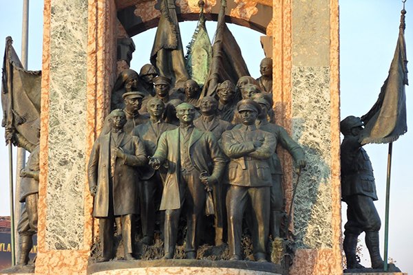 Anıtın kuzey yüzüne bakıldığında milli mücadeleyi, güney yüzüne bakıldığında ise Türkiye’nin modern çehresini yansıttığı görülmektedir. Türkiye’nin modern çehresini yansıtan tarafta Mustafa Kemal Atatürk’ün hemen sağında İsmet İnönü, solunda Fevzi Çakmak, arkasında ise Türk milletiyle beraber milli mücadele de Türkiye’nin yanında yer alan Sovyetler Birliği’nin iki önemli generalinin yer aldığı görülmektedir. İki Sovyet generalinin anıtta yer alması Türkiye’nin, Kurtuluş Savaşı’nda destek ve yardımları vesilesiyle Sovyetler Birliği’ne göstermiş olduğu önemli bir vefa örneğiydi.”