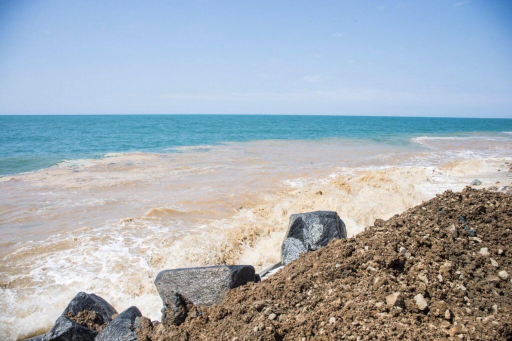 Foto muhabirimiz Kurtuluş Arı, Cumhuriyet TV kameramanımız İsmail Bayraktar ve ulaştırma görevlimiz Sinan Yıldız ile taşocağı alanından dolu bir kamyonun, hafriyatı nereye dökeceğini öğrenmek için araçla takip ettik. Taşocağının çıkışından itibaren yaklaşık 40 kilometre yol giden kamyon, yapılacağı söylenen limanla alakası bulunmayan Trabzon’un Of ilçe sınırına gelmeden yolun sağ tarafında bulunan deniz kenarına girdi. Kamyon, hafriyatı denize döktü, alanda bulunan bir kepçe operatörü de ona yardım etti. Dökülen toprakla deniz çamura bulanırken sahada herhangi bir denetim olmaması ise dikkat çekti.