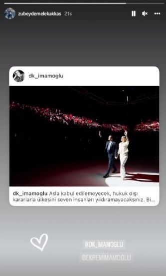 Akkaş, Dilek İmamoğlu’nun Instagram paylaşımını hikâyesine ekledi.
