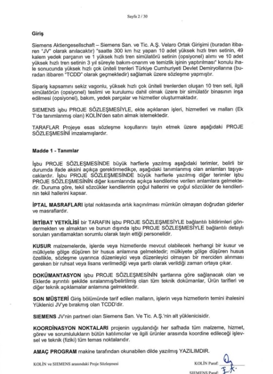 TCDD, söz konusu iş ile Kolin’in ilişkisinin olmadığını söyledi. Ancak Siemens’in Kolin ile 1 Ağustos 2018 tarihli sözleşmesi var. Sözleşme açıkça, TCDD’ye tren seti ve bakım-onarım işini kapsadığını belirtiyor.