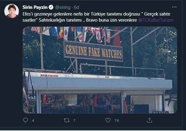 “Efes’i gezmeye gelenlere nefis bir Türkiye tanıtımı doğrusu “ Gerçek sahte saatler” Sahtekarlığın tanıtımı .. Bravo buna izin verenlere”