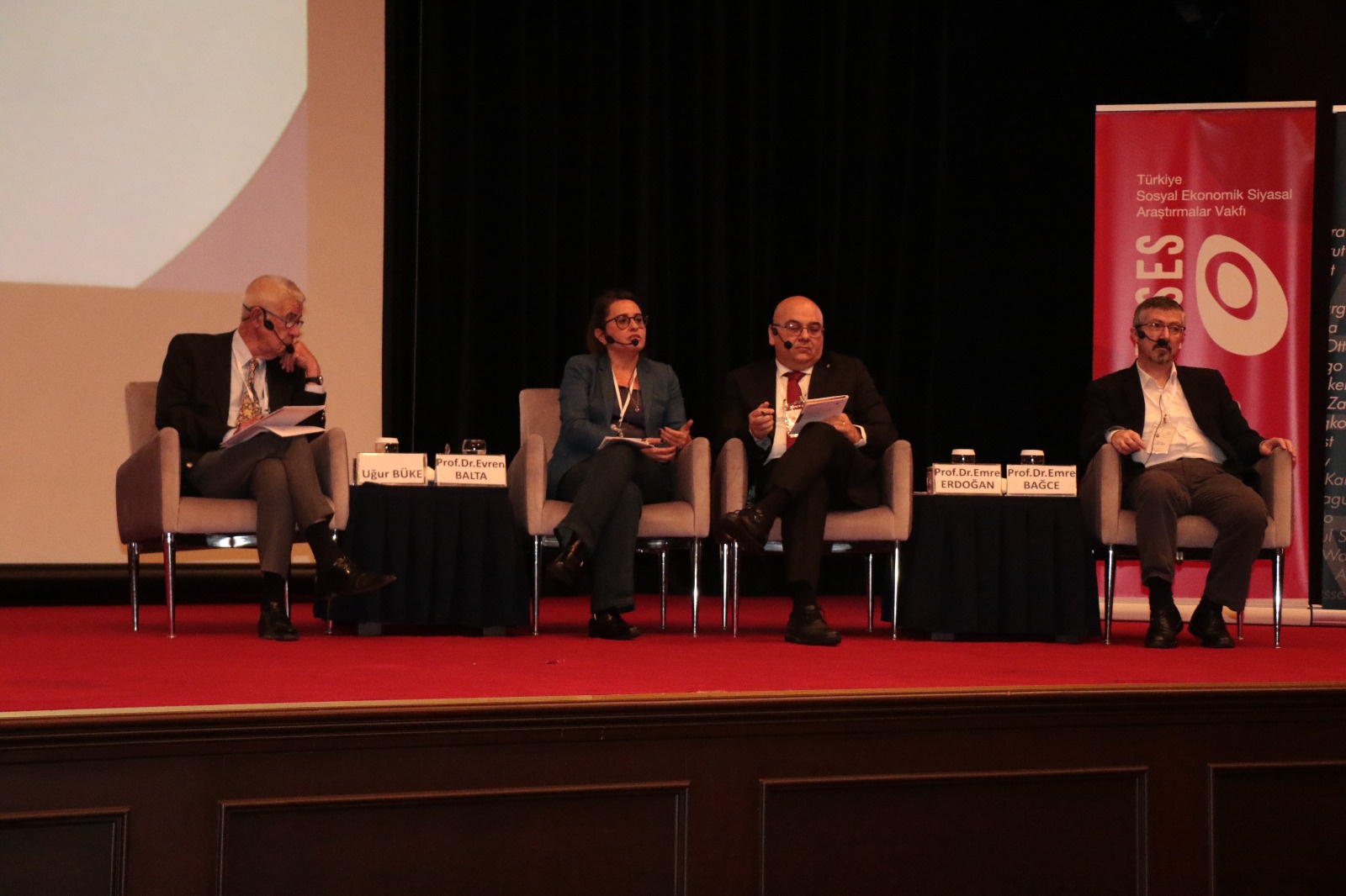 Moderatörlüğünü Uğur Büke’nin yaptığı konferansın “Kutuplaşmaya Panzehir: Demokrasi ve Uzlaşı Kültürü” başlıklı ilk oturumunda Prof. Dr. Emre Erdoğan, Prof. Dr. Evren Balta ve Prof. Dr. H. Emre Bağce konuştu.
