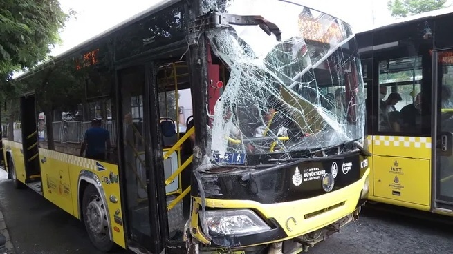 Üsküdar Nuh Kuyusu Caddesi’nde seyreden İETT’ye ait özel halk otobüsü, sürücüsünün yağmurlu havanın etkisiyle kayganlaşan yolda kontrolünü kaybetmesi üzerine, yolun sağında bekleyen tur otobüsüne çarptı.