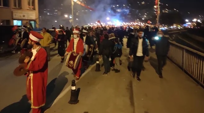 DHA’da yer alan habere göre, Zonguldak’ta 29 Ekim Cumhuriyet Bayramı kutlamaları kapsamında sabah ve öğle yapılan iki ayrı etkinliğin ardından akşam saatlerinde fener alayında mehter takımı, marşlar çaldı. Mehter takımının tüm etkinliklerde yer almasına ise bazı vatandaşlar İstiklal Marşı okuyarak tepki gösterdi. Eleştirilere cevap veren Zonguldak Valisi Mustafa Tutulmaz, “Cumhuriyet Bayramı kutlamasında en büyük rolün halkın, bayrama sahip çıkmasıdır. Sokaklara halkımız döküldü, bir taraftan da kamu kurum ve kuruluşlar valiliğimizin organizasyonunda hep bir elden bu coşkuya katkı sağladı. Gerçekten bütün, herkes son yılların en büyük, coşkulu Cumhuriyet Bayramı dediler” diye konuştu.