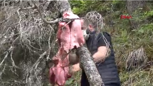 DHA’da yer alan habere göre Trabzon’un Tonya ilçesinde aç kalan ayıların şehre inmemesi için yöre sakinleri ormanlık alanlara kesilmiş kasaplık hayvanların ciğer, işkembe gibi iç organlarıyla baş ve ayaklarından oluşan sakatat bırakıyor.