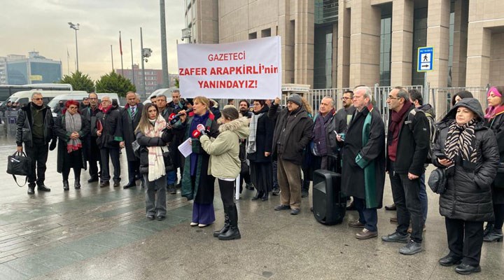 Arapkirli’ye destek için duruşma öncesi gazeteciler, basın meslek örgütlerinin temsilcisi ve yurttaş, saat 10.00’da Çağlayan Adliyesi önünde toplandı.