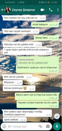Polis ekiplerince yapılan incelemede Şenpınar’ın arkadaşına, “Ahmet ile net bir şekilde bitti. Bir aydır hiçbir şekilde birbirimizle alakamız yok. Sadece aşırı alışkanlığın verdiği üzüntüyü yaşıyorum. Şarttı, belki de” şeklinde mesaj gönderdiği ortaya çıktı.