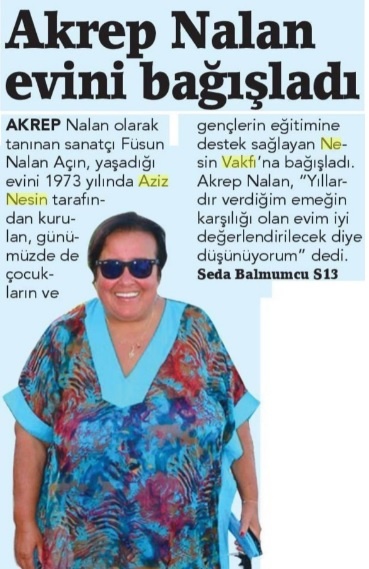 Sizin için Akrep Nalan, bizim için çocuklarımızın Nalan ablası, güler yüzlü, güzel dostumuz Nalan Açın'ın vefatının üzüntüsü içindeyiz.