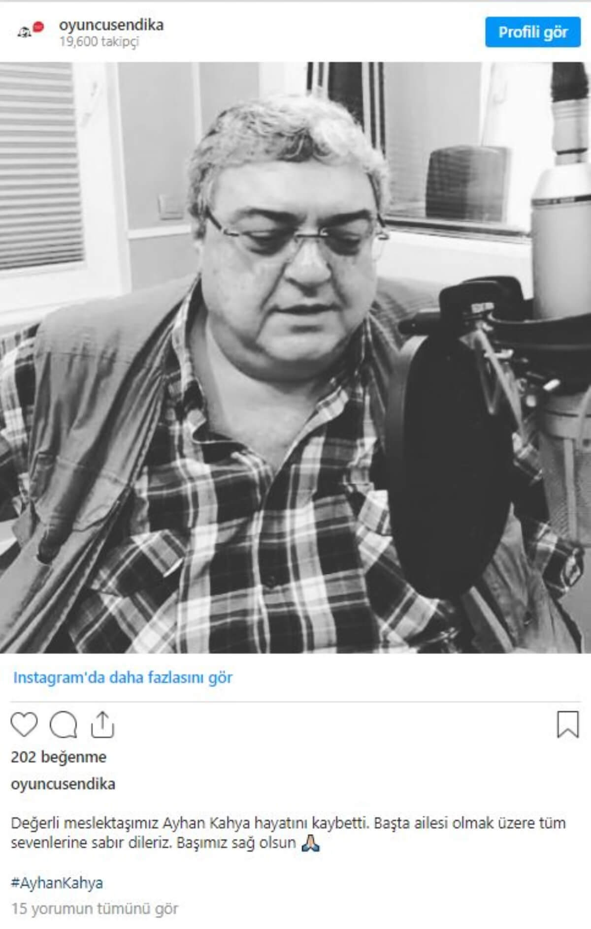 Yapılan açıklamada, “Değerli meslektaşımız Ayhan Kahya, hayatını kaybetti. Başta ailesi olmak üzere tüm sevenlerine sabır dileriz. Başımız sağ olsun” ifadelerine yer verildi.