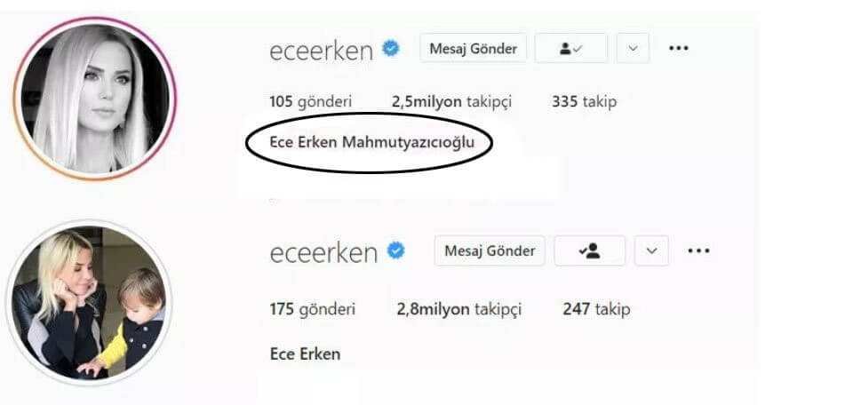 Ece Erken “Eşinizin soyadını neden sildiniz?” diyen takipçisine “Yaşananlardan sonra bazı akrabalarıyla aynı soyadını taşımamak için… Her gün daha da iğrenç şeyler duyuyorum” cevabını verdi.