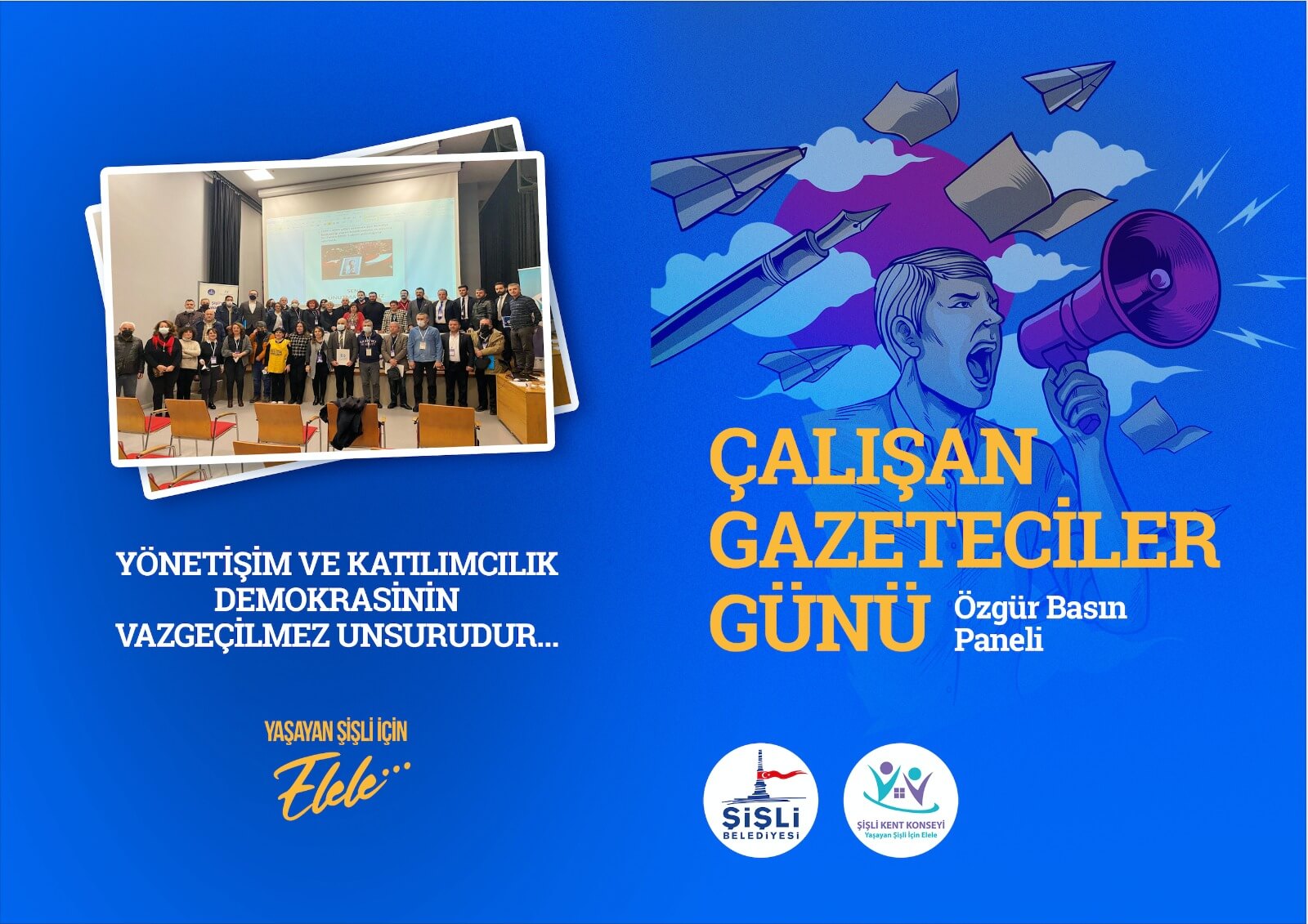 Şişli Belediyesi ve Şişli Kent Konseyi, "10 Ocak Çalışan Gazeteciler Günü" nedeniyle 9 Ocak Pazartesi günü Nazım Hikmet Kültür ve Sanat Evi’nde “Özgür Basın Paneli” düzenleyecek. Saat 11.0'de başlayacak etkinliğe, Türkiye’nin önde gelen gazeteci, akademisyen ve hukukçuları katılacak.